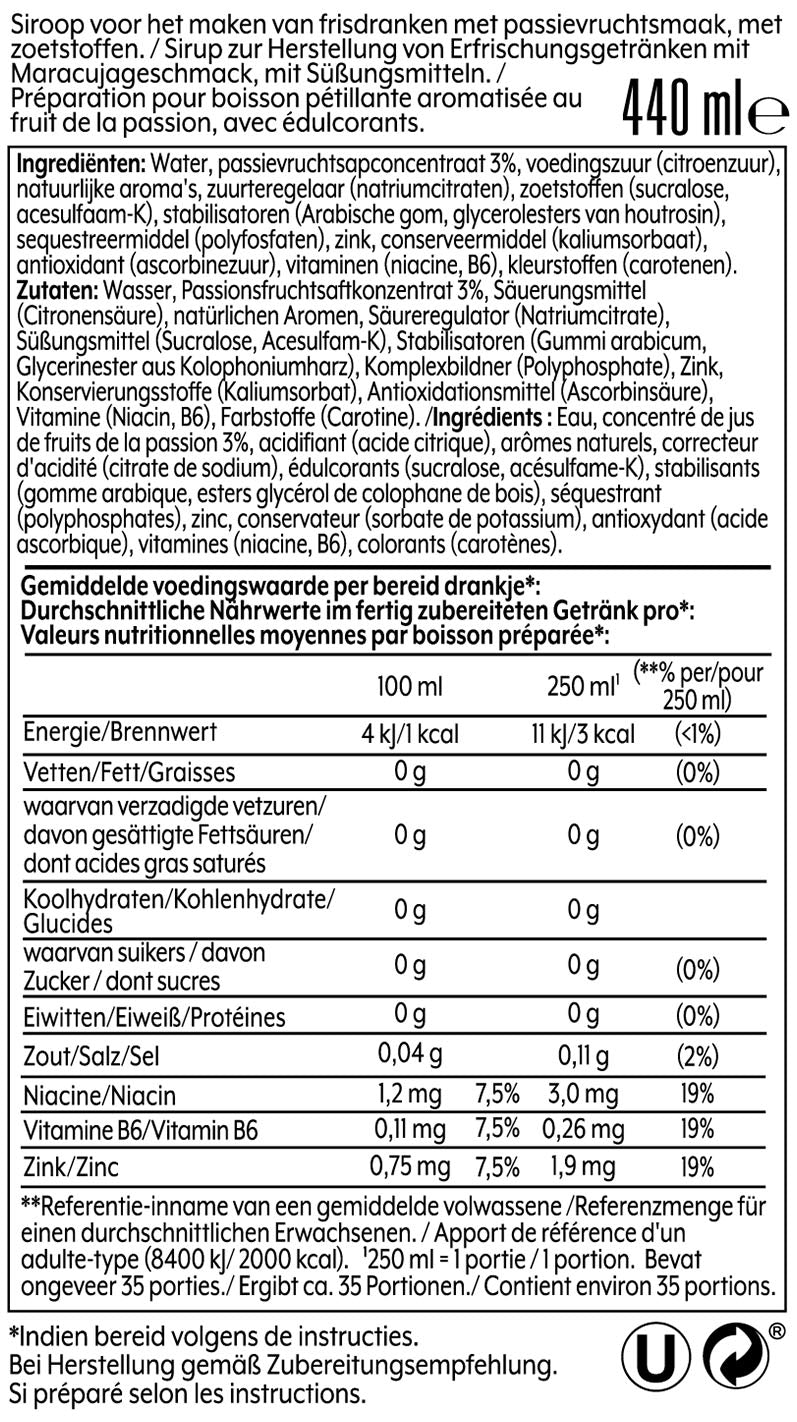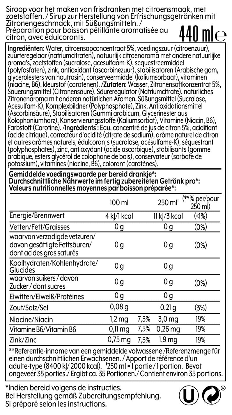 Avec six bouteilles de SodaStream sirop, vous pouvez préparer jusqu'à 54 litres de boisson pétillante. Il vous suffit d'ajouter la quantité appropriée de sirop à de l'eau pétillante dans une bouteille SodaStream, et vous obtiendrez rapidement une boisson rafraîchissante, idéale à tout moment et en tout lieu. Pour plus d'informations sur les ingrédients et les valeurs nutritionnelles, consultez le tableau des valeurs nutritionnelles.