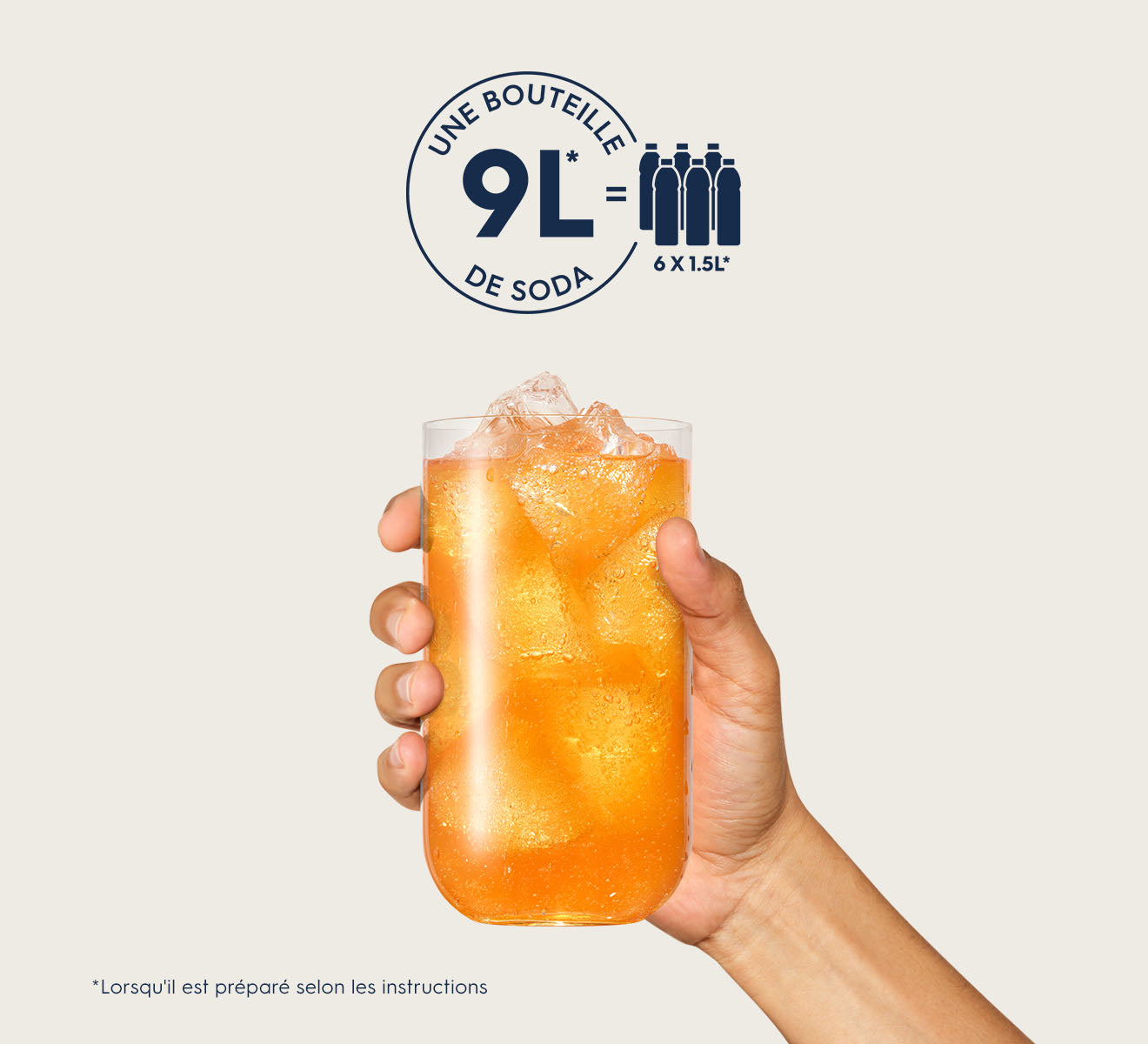 Une bouteille de SodaStream sirop permet de préparer jusqu'à 9 litres d'eau pétillante. Il vous suffit d'ajouter la bonne quantité de sirop à de l'eau pétillante dans une bouteille SodaStream. Savourez votre boisson préférée à tout moment ! Les informations nutritionnelles se trouvent dans le tableau.