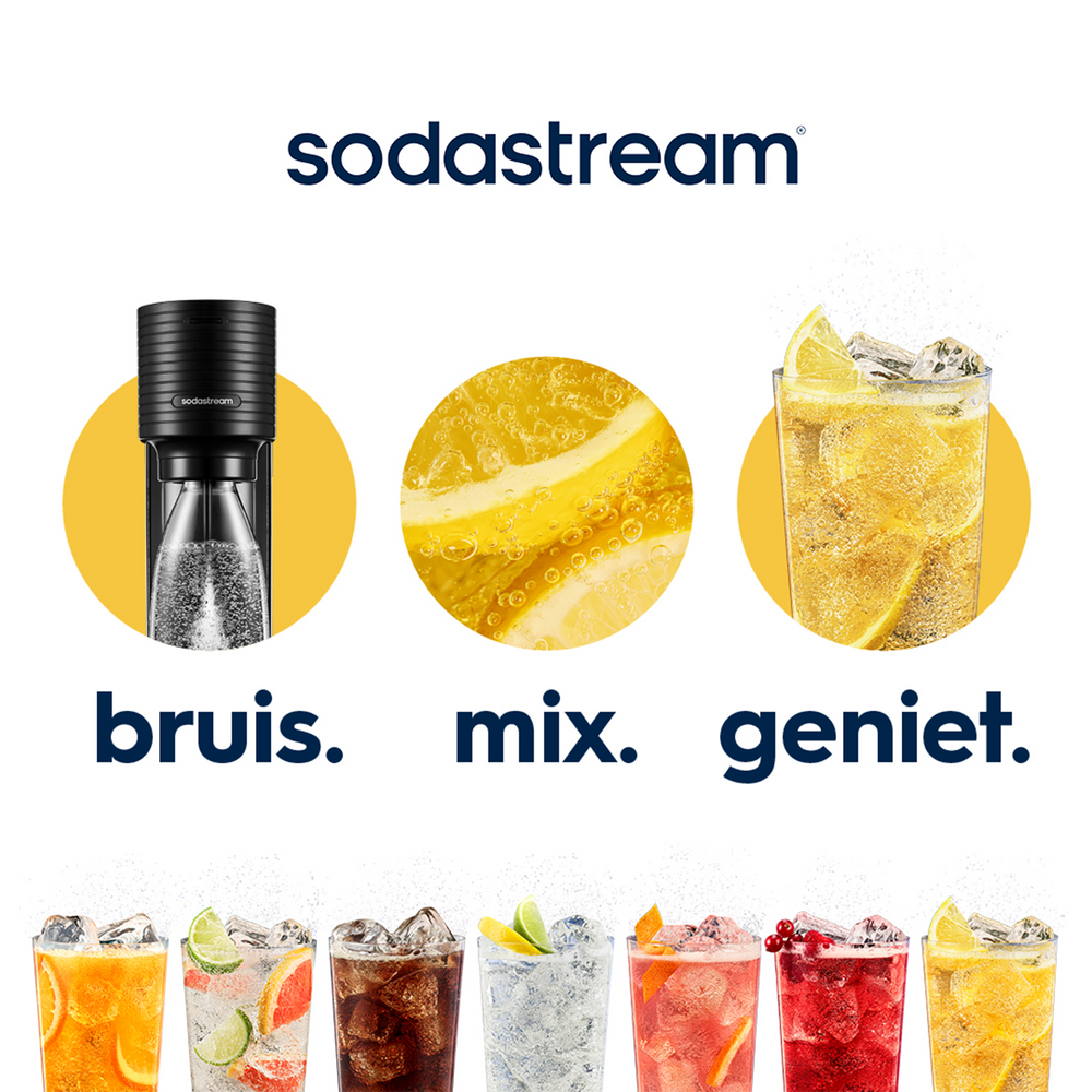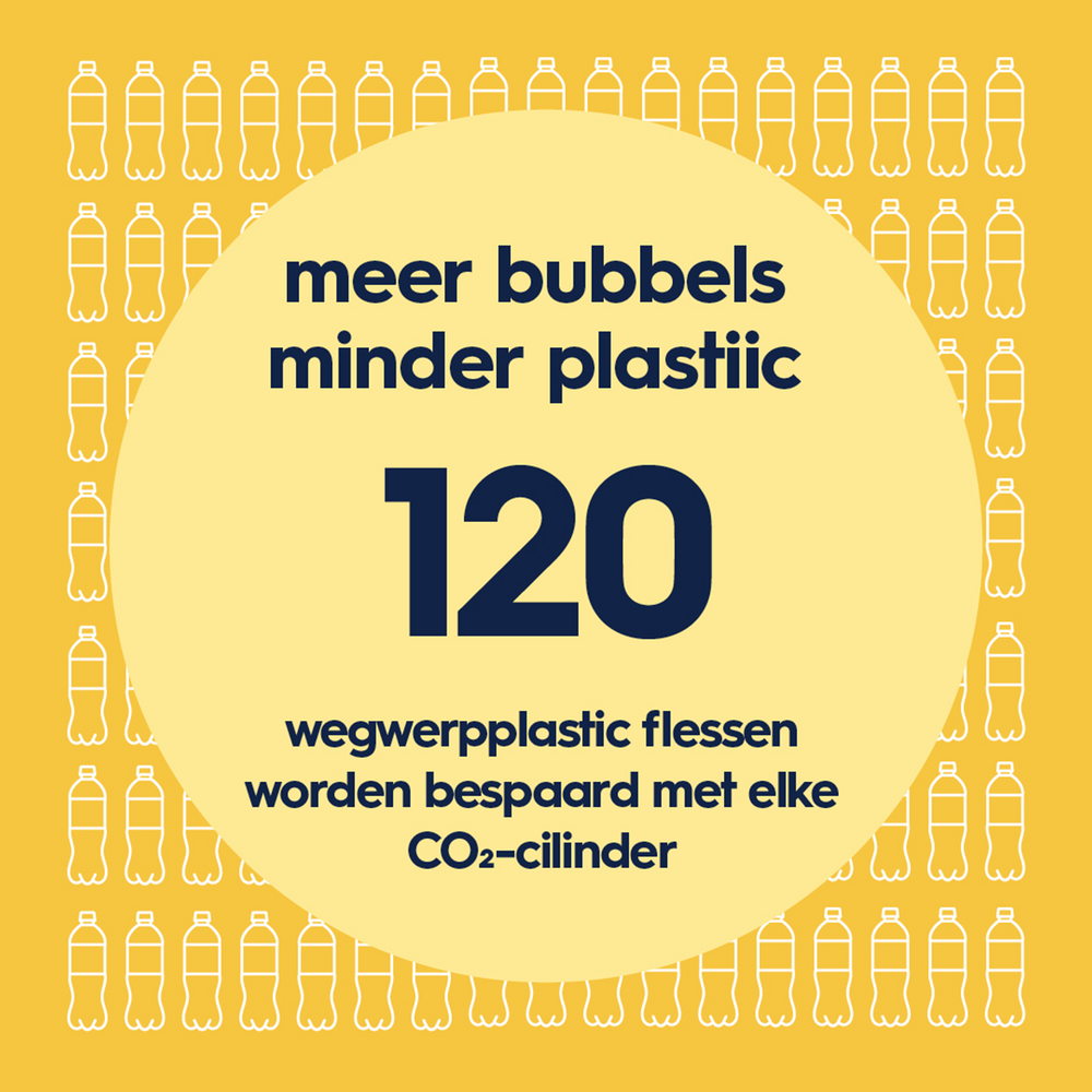 Bruisaanwijzing: De totale inhoud van de flessen is groter dan de hoeveelheid water die je in de fles mag doen om er bruiswater van te maken. Bekijk onze gebruikershandleiding voor meer informatie.