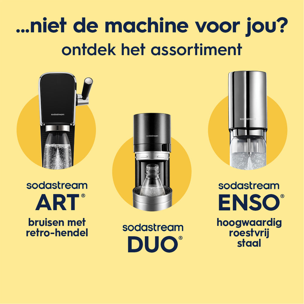 Voor het Sodastream GAIA®-toestel kun je enkel de Quick Connect-cilinders van Sodastream gebruiken. Cilinders met het schroefsysteem zijn niet compatibel met de Sodastream GAIA®.